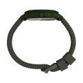 This Timex watch has a case made of Aluminum with a diameter of 42 mm and is fitted with a rubber band. Inside the case lies a Timex movement and the watch features a Mineral crystal.