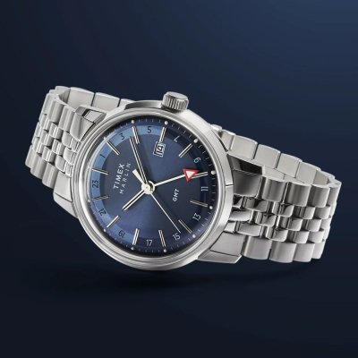 This Timex watch has a case made of stainless steel with a diameter of 40 mm and is fitted with a stainless steel band. Inside the case lies a Timex movement and the watch features a Acrylic crystal.