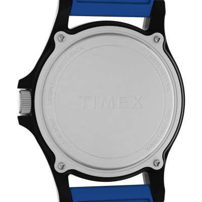 This Timex watch has a case made of Resin with a diameter of 40 mm and is fitted with a rubber band. Inside the case lies a Timex movement and the watch features a Acrylic crystal.