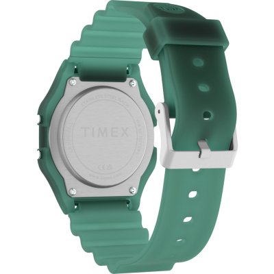 This Timex watch has a case made of Resin with a diameter of 34 mm and is fitted with a Resin band. Inside the case lies a Timex movement and the watch features a Acrylic crystal.