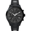 This Timex watch has a case made of stainless steel with a diameter of 43 mm and is fitted with a stainless steel band. Inside the case lies a Timex movement and the watch features a Mineral crystal.
