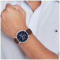 This Tommy Hilfiger watch has a case made of stainless steel with a diameter of 44 mm and is fitted with a leather band. Inside the case lies a Seiko Instruments Inc. movement and the watch features a Mineral crystal.