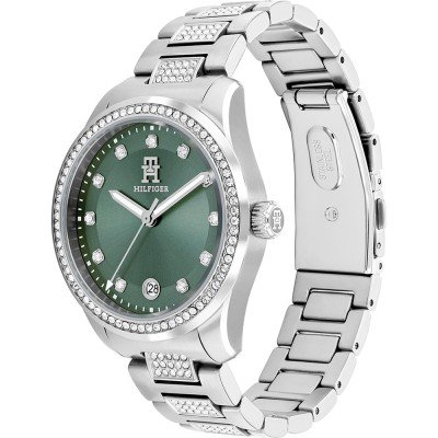 This Tommy Hilfiger watch has a case made of stainless steel with a diameter of 36 mm and is fitted with a stainless steel band. Inside the case lies a Seiko Instruments Inc. movement and the watch features a Mineral crystal.