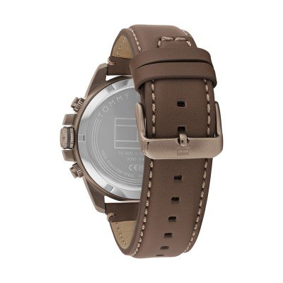 This Tommy Hilfiger watch has a case made of stainless steel with a diameter of 43 mm and is fitted with a leather band. Inside the case lies a Seiko Instruments Inc. movement and the watch features a Mineral crystal.